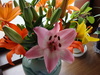 先日ある患者さんに頂いた「スカシユリ」が、ピンク色の花を咲かせました。通常、橙色、黄色、赤色が多いとのことです。
